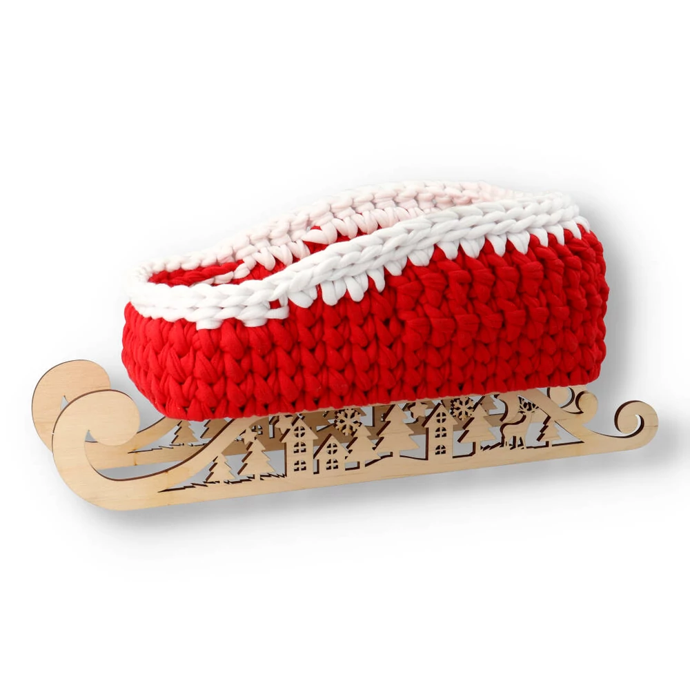 A gazdagon díszített talpak a szánrész meghorgolása után az alj részbe pattinthatók. A talprész hossza 30 cm, az elkészült szánkó magassága kb. 14 cm.
