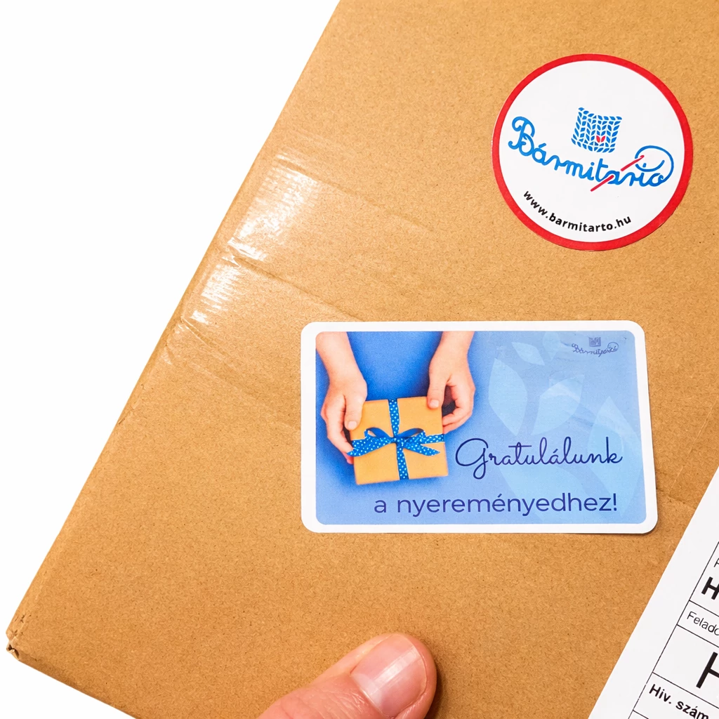 Ebben az esetben a dobozodra egy Gratulálunk a nyereményedhez! feliratú alibi matrica kerül, a számlát pedig csak e-mailben kapod meg.