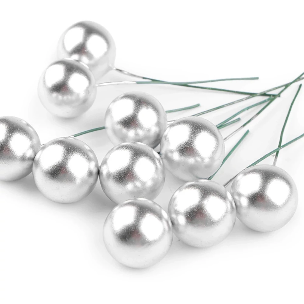Kopogtatók, asztali díszek díszítéséhez beszúrható ezüst bogyók.