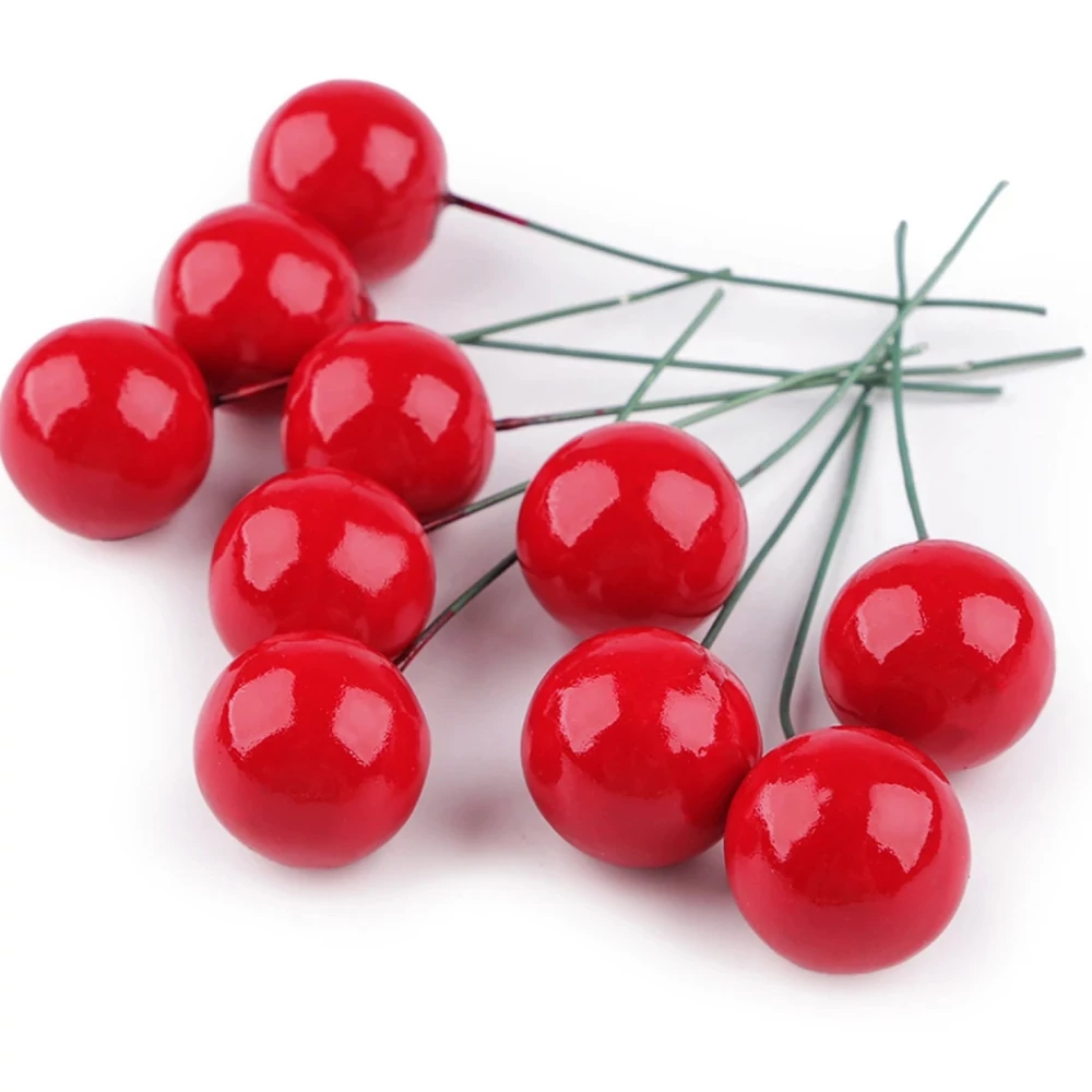 Kopogtatók, asztali díszek díszítéséhez beszúrható piros bogyók.