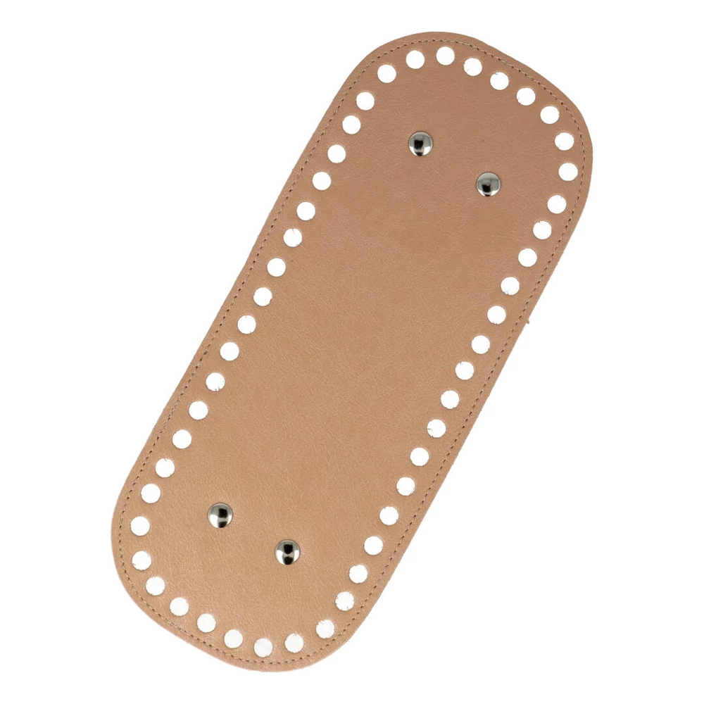 7 miliméteres lyukak találhatók a bőr táskaaljon, amin kényelmesen át tudod húzni mindegyik Bármitartós pólófonalat és a Ruby lapos poliészter fonalat is. Mérete 10*24,5 cm, ami egy könnyed, kézitáska méretnek felel meg.