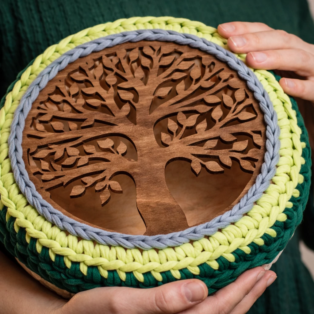A gazdagon áttört mintázatú faalapokból pont ilyet tudsz horgolni.