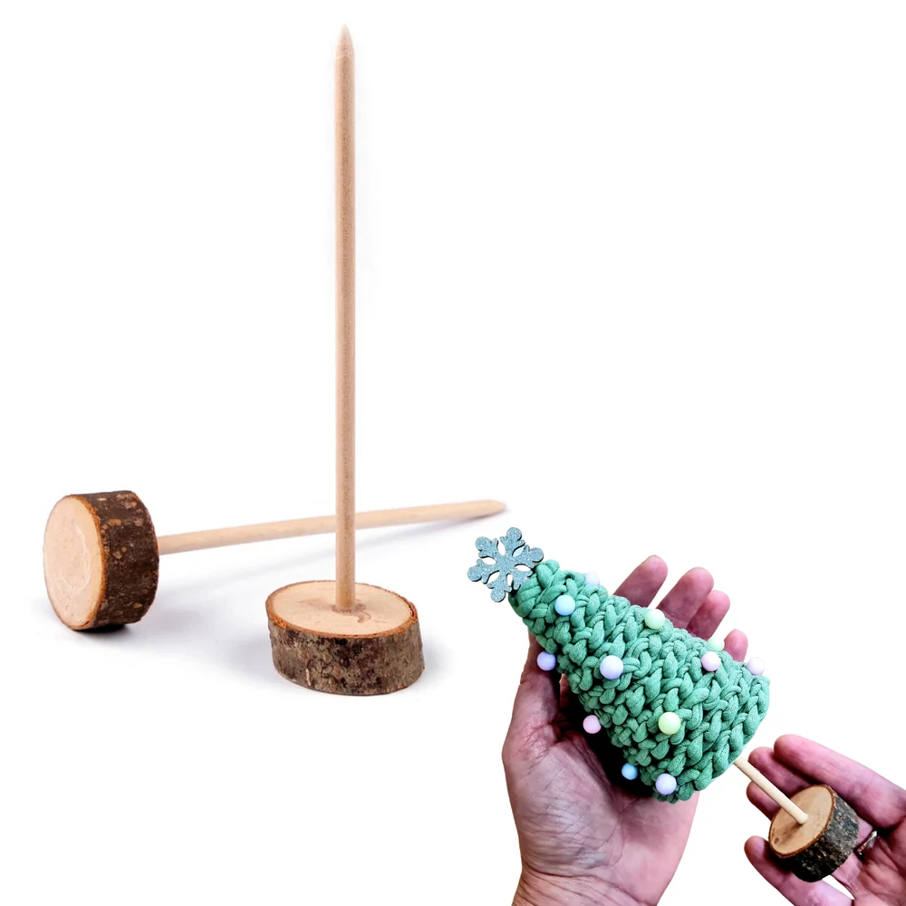 Kb. 15 cm magas fa talpazat horgolt fenyőkhöz.