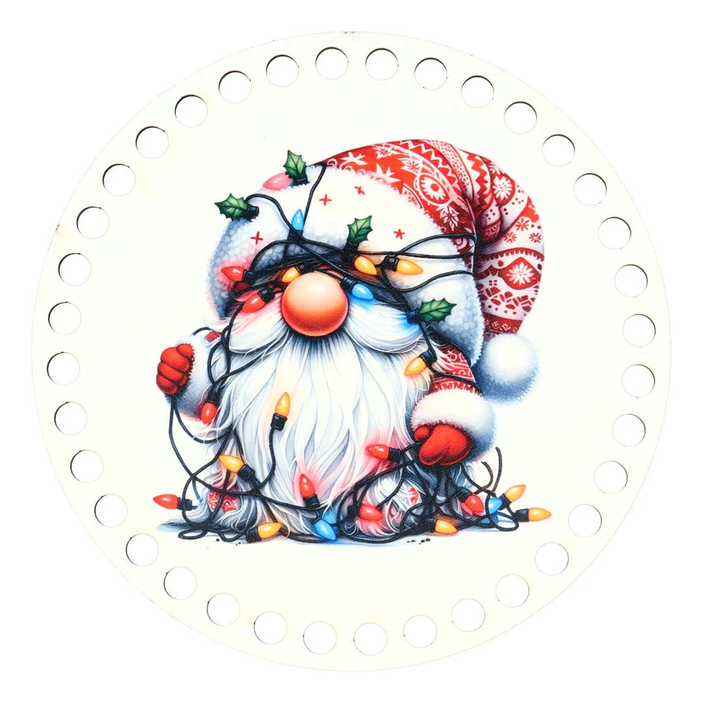 Színes horgolható alap fényfüzéres manó motívummal kopogtatókhoz, kosártetőhöz