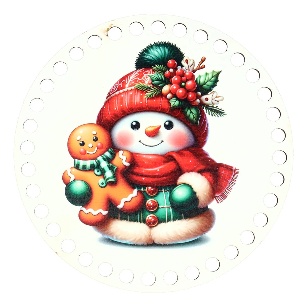 Színes horgolható alap hóember motívummal kopogtatókhoz, kosártetőhöz