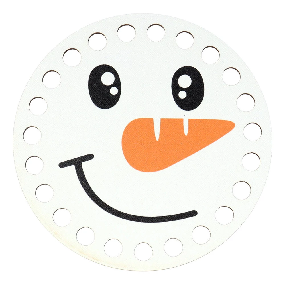 Színes horgolható alap kedves hóember pofi motívummal díszekhez, dobozkákhoz, poháralátétekhez