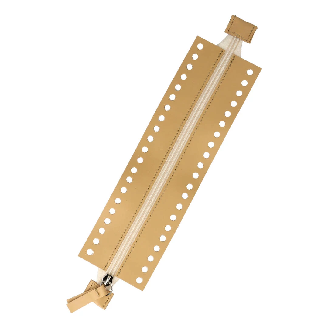 Horgolható hosszú bőr cipzár - Birs - 26cm